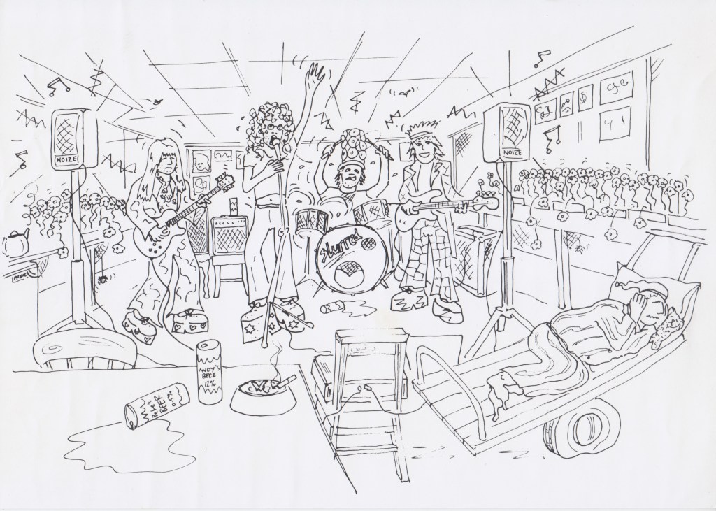 Andy produced the delightful and fun cartoon artwork that was used to advertise the band in the early years.