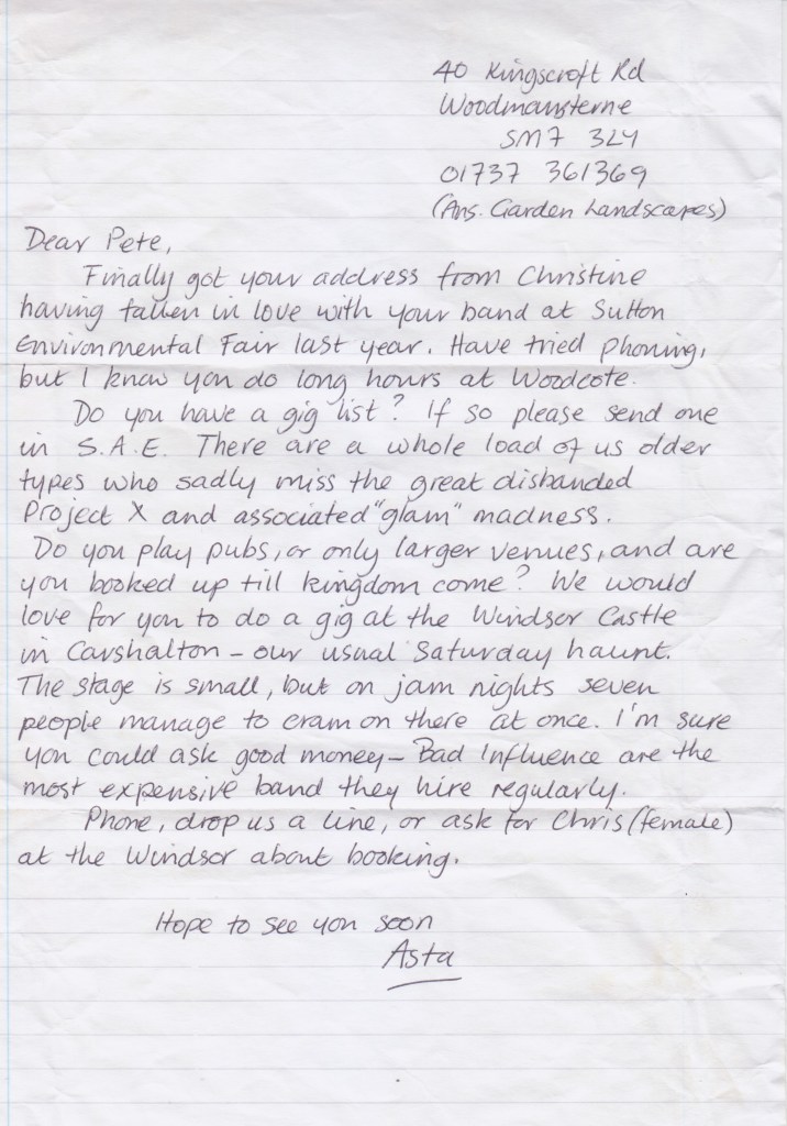 We always had a good time playing the Windsor Castle in Carshalton. This pair of glam rock classics became our standard openers.