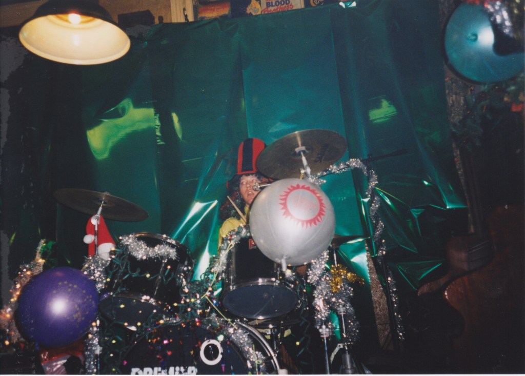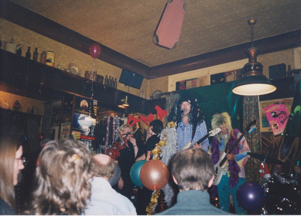 For Xmas shows were at The Grouse & Claret in 1998 and The Gun Tavern in 1999. We had been joined by Debs, Julie and Sandra contributing backing vocals and extra colour and glamour – in the band we jokingly called them the Slurries. They were with us until decimated by child-rearing responsibilities.